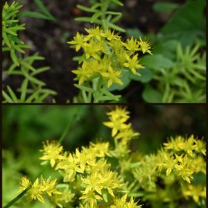 ビタミンカラーの黄色いベンケイソウ科のお花たち🌼🎶 色々な所で出会っていました💛🎶 お花だけ見たら、皆んな同じお花に見えてしまいます😅💦 葉っぱで見分けるしか無いですね🤔✨ 🌿ベンケイソウ科 マンネングサ属 ① オノマンネングサ 本州〜九州の低山地の岩上、林縁などに生える。 茎は長さ10〜25cm、基部は匍匐し、上部は斜上する。 葉は3輪生し、柄はなく、扁平で、線形〜線状披針形、長さ2〜3cm、幅2〜2.5mm、鋭頭で、淡黄緑色。 ② コモチマンネングサ 本州〜九州の道ばたにふつうに生える。 茎の下部は横にねて斜上し、高さ7〜20cm、多汁質で軟弱。 葉は互生、茎の下部のものは対生し、さじ状倒披針形、鈍頭、長さ7〜20mm、基部は細まって無柄、上縁には微細な凹凸がある。 葉腋に円形で多肉な2対の葉のある肉芽をつくってふえる。(葉の形をしたムカゴ) ③④ ハママンネングサ 準絶滅危惧(NT) 海浜植物 海岸の岩の上に生える多年草である。 全体に多肉質で、つやがあって無毛。 茎は横に這い、やや間を開けて匙型の葉を互生する。 ただし他のマンネングサ類のように這い回ってカーペット状の群落を作るようにはならず、小さな塊になる程度。 茎に付く葉は基部から先端に向かって小さくなり、あまり匍匐茎的には見えない。 むしろ草全体の姿としては立ち上がる花茎が目立ち、キリンソウの型とマンネングサの型の中間のようにも見える。 ⑤ キリンソウ ベンケイソウ キリンソウ属 海岸から亜高山帯までの、岩場や乾燥しやすい草原に生える多肉質の植物。 茎は太く高さ5-30 cm。 葉は肉厚で、長さ2-7cmの倒卵形または長楕円形で互生する。 葉の縁は中央から先端にかけて鋸歯形状となる。 茎の先端が平らな集散花序となり、マンネングサに似た多数の黄色い花を付ける。 🌼🌿🌼🌿🌼🌿🌼🌿🌼🌿🌼 ハママンネングサは、筑波実験植物園で見て来ました✨🎶 準絶滅危惧種だそうですが、元気モリモリ咲いていましたよ🥰🎶