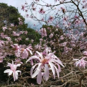 今日のお花 コブシ 東海三県のみに自生する日本固有種のシデコブシ(ヒメコブシ)🩷 優しいピンクの花が大好きです💕 ②秋には拳のような実が弾けヒヨドリの餌になります🐦⬛