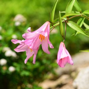 「ヒメサユリ」 姫小百合 淡いピンク色の清楚な姿 ※自生地(宮城・新潟・福島・山形など一部の地域)減少しており、環境省レッドリストで準絶滅危惧種だとか? 六甲高山植物園 5/28