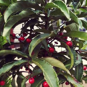 万両の実が色づいてきました☺️ 今年は台風🌀の影響で、 実が半分以上落ちてしまったのは 残念ですが、 その分、一つ一つが 例年に比べ大きいです。 植物は毎年違って面白いですね🎵🌿