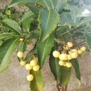 今年もよろしくお願いします😊 実家の庭の万両が、 白い実を沢山付けていました💚 定番の赤も良いですが、 白もなかなか趣があります🎶