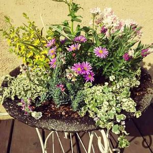 中鉢の寄せ植え。 病院の入口に飾って頂きます。