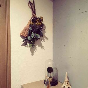 今月のレッスンで作った しめ縄飾り アートフラワーを使っているので長く楽しめます🎵 さて、そろそろ黒豆を水に浸けますか…
