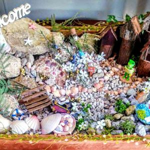 海というより、「貝」の作品です🐚🌱✨大きいですが、今回は接着しました🙆 見所満載にしましたよ~😄 特に家は父の手作りです🏡✨ 父の職場用です🌱