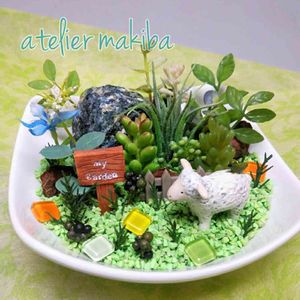 お皿の上の小さな野原です😊❤ やっと砂もキレイに固められるようになりました😂