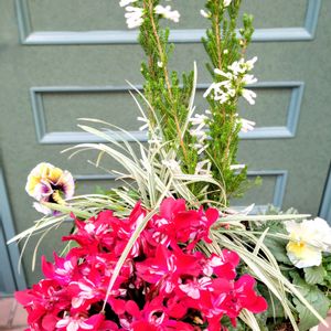 X'mas🎄✨寄せ植え エリカホワイトデライト シクラメンジックス パンジークレールドゥリュンヌ ときめきビオラ ミスカンサス