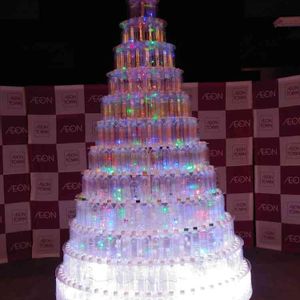買い物に行ったらペットボトルで作ったクリスマスツリー✨🎄✨がありました‼️ キラキラ✴️してとってもキレイでした❤️