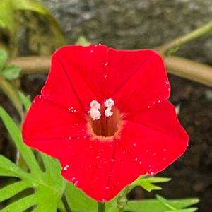 もみじ葉ルコウソウ またはハゴロモルコウソウ(羽衣縷紅草)」 「ルコウソウ」と「マルバルコウソウ」を交配した園芸品種 ❷去年のpic ❸去年は植えすぎて大変な事になったので今年はもみじの木に一本だけ巻きつかせて見た😝 上に上にと伸びて行くのでどこまで行くのかな