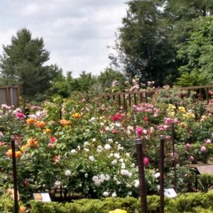 少し晴れ間が出てきたのでシャッターチャンスでした。 せっかく行ったのに、ミラーレス一眼忘れちゃって😂練習になったのに〜😅 でもiPhone撮影って📱色綺麗で良く写るんですよねー😆💦 手前の薄紫色のバラは、ノヴァーリス💜 とても立派で大きな株になっていました! 奥にはギヨーのバラコーナー🌹 ERコーナーやフェンス沿いにはつるバラコーナーなんかもあります。