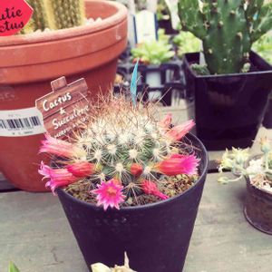 このフォルムからの綺麗過ぎる花といい、咲かせ方といい、パーフェクトです! はぁ。愛おしい マミラリア系の何かだと思われます