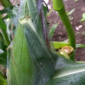 スイートコーン 毎年収穫時に鳥害にあっていました。ネットを張ってもやられていました。今年は数量も少なかったので、百均で手に入れた排水溝用のネットをかけてみました。 効果は️⭕️