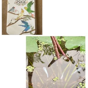 睡蓮と綺羅星メダカ✨✨ 涼やかです 昨日携帯の裏側を割ってしま ったので、セリアでカバー を買ってきました (表側は保護フィルム貼って たので無事) 小鳥の模様で可愛い♡♡ 動物好きです(^^)
