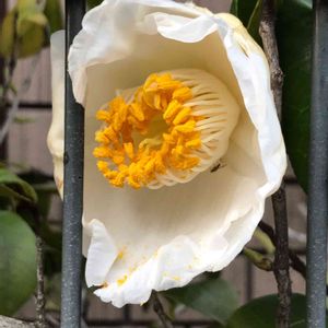フェンス越しですが、 白い椿でしたので、撮りました。