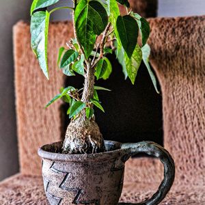 Ficus bengalensisの変種クリシュナとアーリーゴッド。何でふたつあるんだ……。持ってないと思って買ったんですかね。