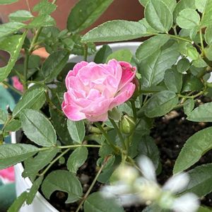庭にある、かず少ないバラですが 秋の陽気に誘われて かわいい花を咲かせています 庭に出るのが楽しい季節 やっとですね 🪴