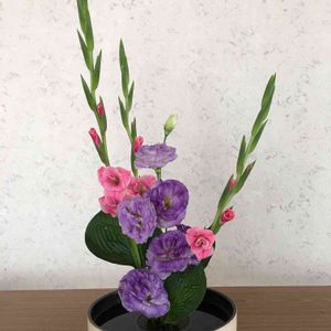 2018年6月26日 今回のお稽古🌼は、未生流の基本形、色彩盛花、体用型B。 お友達から、お花🌼が音符🎶のようで、可愛いね💖と。 本当だ、そう言われてみると、あら不思議、そう見える〜👀 人の意見、評価は、誠に貴重だ❗️ みんな、ありがとう😊 今回の花材、グラジオラス、トルコキキョウ、ぎぼうしゅ