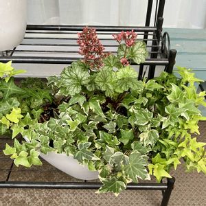 ヘデラがモリモリの寄せ植え ヒューケラパリも頑張ってます😊
