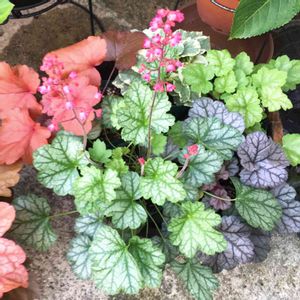 ❤️💛💚💙💜 ヒューケラ ❤️💛💚💙💜 選べなくて全8種とも買ってしまった(♡´艸`)︎💕︎💕名前が美味しそうな子がいくつか居る(*´﹃`*)