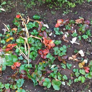 ランナーから伸びて余ったイチゴ🍓 庭に植えましたが寒さで葉が紅葉して来ました♪ 先日、スーパーで100円で3個の固まりのニンニクを買ってきたので、全部バラバラにしてイチゴの周りに植えました。 埋めただけですけど(笑) 去年はニンニクは丁寧に皮を剥いて水に付けて根と芽を出させてから植えましたが、今年は『これって球根だしな。』と思って割ってそのまま埋めました。 3個100円だし、出なくてもそんなにショックもないですしね! イチゴのコンパニオンプランツにニンニクがいいと言うサイトとニンニクはダメって言うサイトがあります(笑) まぁ、気にしません! なるようになります!