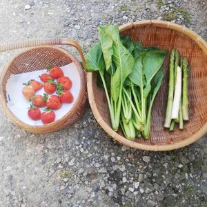こんにちは。 雨のつもりが半日晴れに変わりラッキーです。😆 『ラッキー・デイの収穫』 左 イチゴ🍓 株数が少ないので多分今がピークです。合体イチゴあります。 中 コマツナ最終便です。今までありがとうー。 右 アスパラ。そろそろ終盤です。ホワイティが1本。 今日も楽しく参りましょう❢