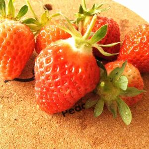 今日の収穫7個です。 ここの所、毎日このくらい収穫出来ています。 毎日収穫しないとたちまち蟻や鳥に食べられてしまうので、ちょっと早いかな〜? と思うのも収穫してしまいます。 食べられてしまったイチゴは他のを狙われ無い様にそのまま地面に落として蟻さんの餌になっています。 虫さんとの攻防戦はもう少し続きそうです。