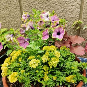 ヒューケラリオ、グレープソーダ、ライムリッキー寄せ植え リオの花が咲いています。 センターのガーデンシクラメンはいまいち調子が上がりませんでした。