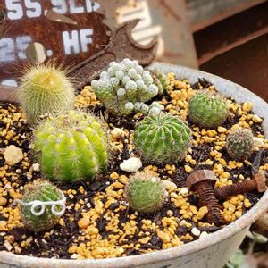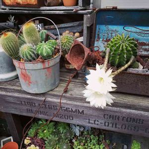 久々の更新になってしまった💦 ペンキ缶に 100均🌵の寄せ植えが 1年でギューギューになるくらい 成長〜 バニーカクタスがお化けカクタスに、なっちゃった😅