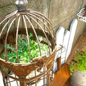 早速♪♪ サビサビのグリーン用の鳥カゴなんかな? セダム科のレモータを丁度いい鉢に植えて入れました。