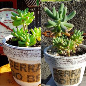 左 去年の9月に植えた乙女心 右 そのまま大きくなった今・・・💦 むむむ? おかしい💦明らかに 奥のは乙女心サンではないっ(;°д°) こっコレは恋心? 詳しい方教えてくださーい かわいい~って植えた乙女心サン なんだかなぁ(^_^; 一つだけ化けモンみたいやん💦