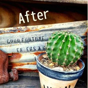 ひっさびさの☀の休日~✨ 塗料バケツに サボテン寄せ 300円の十二の巻と 100均のサボテン🌵 ただ植えただけ(^_^;