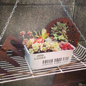 今日気温低く寒い! でもせっかくの休みなんで、 寄せ植えの仕立て直し💦 今日は真冬から生きに残ってくれた子と、新しく狩って来たセンペルを飯ごう寄せに。