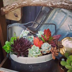 工具箱の寄せ植えも センペルさんを中心に仕立て直し