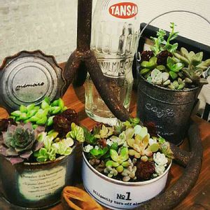先日骨董市の戦利品 古くなった缶の鉢に ワイヤープランツを 植え替えて♪♪ 元気に育ってよー( *´︶`*)