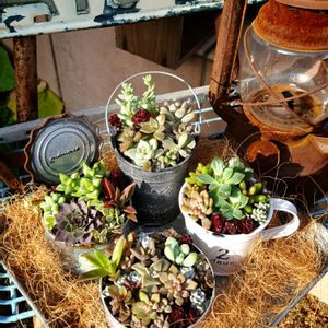 飯ごうの寄せ植え 多肉が落ち着いてきたかな ( *´︶`*) 元気にそだってね💕