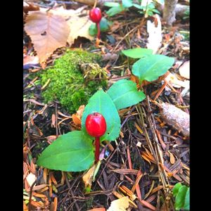 こんばんは 山で出会った赤い実 地面に這っていましたが、名前がわかりません。 ご存知の方教えてください。 まさマニアさんから教えていただきました。 ツルリンドウ🔴 来年はお花を見たいです。