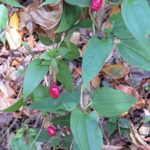 ツルリンドウ(蔓竜胆)の赤い実 リンドウ科ツルリンドウ属の多年生つる植物。 他のリンドウの仲間は、乾いた殻の中に小さな種を付けるが、このツルリンドウだけは、赤い実を付ける。 花期8月~10月 先週の山歩きで見つけました♪ 初めて本物を見ました♪花も見てみたい!
