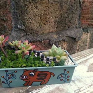 鳥取の990さんからのリメ鉢に植え替えしました🙆 たくさんのリメ鉢の中から選びました~~~💦 黒っぽいザラザラ鉢にはアイボリーさん・・ 黒にアイボリーの色が映えるかな😁 白ぽい超ザラザラ鉢には群雀さん・・ 縁回りのデコカラーと調和しそうでしたから・・それぞれチョイスしました~~~💦 アッ!モアイ🗿も以前990さんから~~~💦 990作家さん・・ありがとうございました✨