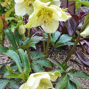 右のコップのドルフィンネックレスは、元は左の寄せ植えのクリスマスの奥に入っていました あまりに暴れて 後ろ髪ながっ‼️状態だったので、退散していただきました(^_^;) ドルフィンネックレスや三日月ネックレスは、茎が硬くて下に伸びるばかりで 寄せ植えに入れるには難しいですね😅 繁殖力もすごいのか、コップの中で もう根が出てきています😳 単独で植えて 暴れてもらうことにします😊