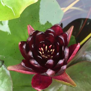 札抜け開花待ちで品種特定できたブラックプリンセスの横見〜♪ めっちゃ色が濃い〜! ■温帯睡蓮 ブラック・プリンセス