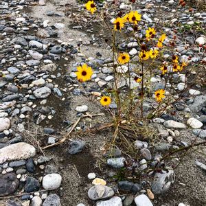 天竜川下流域にて。 暴れ天竜との名が示す通り、蛇行した川べりまでは堤防からかなりの距離があります。下流とは言っても、海までは遠いのですが、石とともに砂も多量に見られ、スケールの大きさを感じます。 そんな中、この季節に花に出会いました🌼 調べてみても、自分では特定できるものがありません💦 オオキンケイギク(特定外来生物)ではなさそうで、イトバハルシャギク、ホソバハルシャギクとも花芯部分が違うような💦 そもそも、こんな季節にここで咲いているのも…❓ どなたか、詳しい方、教えていただけると嬉しいです😊 これも、石同好会の投稿です❣️ 悪天候のため、写りが悪くて申し訳ありませんが🙇♀️✨