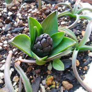 鉢植えのヒヤシンス🌱 順調に育ってます✨ 周りの細い葉っぱ🌿はムスカリ。 何というか、クネクネしてキモチワルイ…😓 花が咲いたら可愛くなるなかな?😆