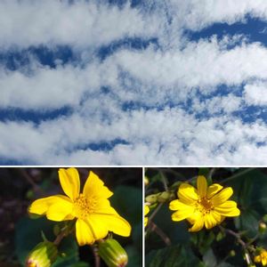 11時半頃の空模様 ≈≈≈ナミナミ雲≈≈≈ その空の下では石蕗が次々と開花中💛