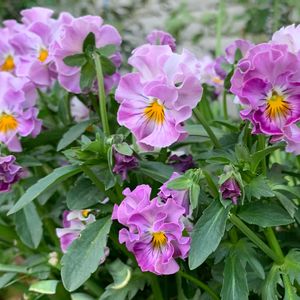2枚目です😊 夢見るパンジーが最後の力を振り絞る様に咲いています🌸💜🩷 鉢の半分くらいしかもうお花がありませんが、最後までこの色合い、フリフリ、咲いてくれて癒されます☘️