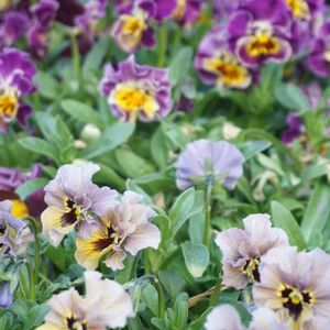 タンゴアモーレ 晴れの日のパル シュシュの約束 恋するマーメイド 花壇に植えた見元園芸ビオラが満開です🌷 お花畑の絨毯が広がっているみたいでとっても綺麗💕