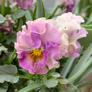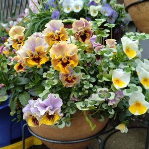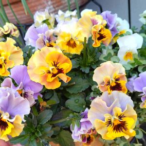 M &Bフローラ さまの 『ローダンセマム アプリコットジャム』 『 夢見るパンジー 』とのコラボ🌸 我が家で育てている、夢見るパンジーを 並べてみました🥰 ふんわり広がる小輪フリンジの可愛いパンジーです🌼🌸