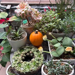 多肉植物 リメ鉢寄せ happy Halloween🎃 なんとか間に合わせようと 適当手直ししました💦 そして実生苗の植え替えが進みません😣 秋短すぎ!!
