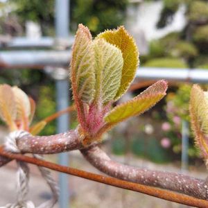 こんにちは☀️ 春の陽気ですー 『キウイの萌芽〰️』 キウイの木に芽がでてきました☺️ 若い木ほど芽がでるのが早いみたいです。 速く成長したいと思っているのでしょうか? 今日も楽しく参りましょう‼️