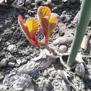 こんにちは〜😃 暖かくなり、遂にダウンジャケットとおさらばしましたー。 『この時期、新梢は伸びない?』 偶然にも自然な取り木ができ、1/19に地植えしたキウイの雌木です。🥝 枝がぐんぐんと伸びるのをイメージしていましたが、10cmほどのままで葉が出てきました。 この時期、枝は伸びないのかな… まあ、生きているのが確認できたのでOK牧場〰😆 今日も楽しく参りましょう❢
