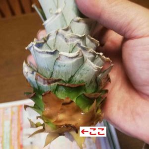 おはようございますー。 あいにくの曇天ですが雨はふらなさそうです。🌫️ 『パイナップルのヘタ栽培②』 パイナップル🍍のヘタを水耕栽培しています。 3/2にスタートして、なんか根が出たっぽいです。🤩 第1関門突破でーす。😁 土に植え替えるタイミングがわかりませーん💦💦💦 今日も楽しく参りましょう❢