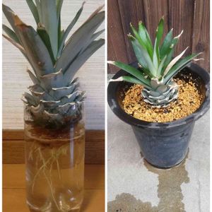 おはようございますー。 やっと雨が上がり、快晴です🌅 『パイナップルのヘタ栽培②』 水耕栽培で根が10cm近くになったので、先日、鉢植えに替えました〰。🍍 とりあえず、一歩前進です。 へたな鉄砲も数撃ちゃ当たる! ですかね〰😆😆😆 詳細はブログで 今日も楽しく参りましょう❢